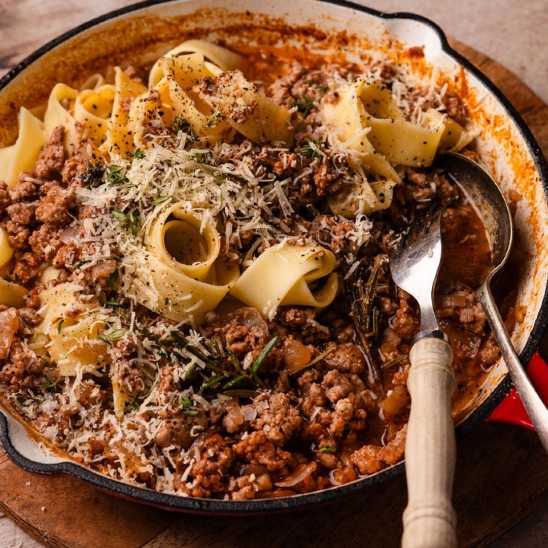 5. Serve with cooked pappardelle pasta, lashings of parmesan cheese, extra herbs, salt and pepper.